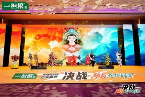 年会现场,岭南特色歌舞与京剧元素创新融合,舞者们手持仿古酒器,演绎着一幅从京城到南海的文化交融画卷。这场精心编排的开场表演,不仅点燃了现场气氛,更象征着一担粮打破地域界限、融合创新的品牌理念。